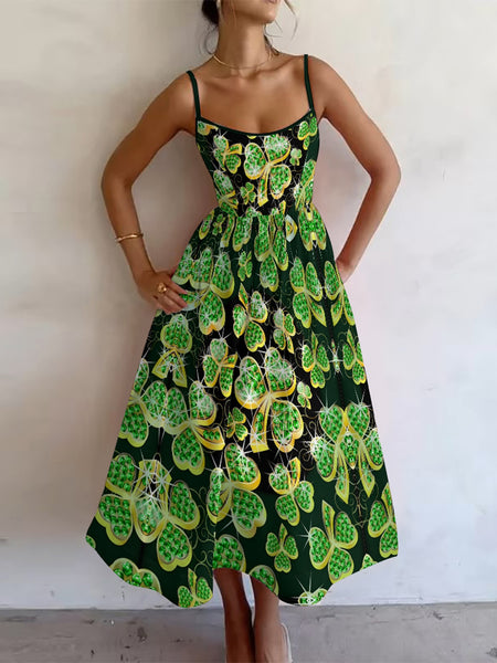 • Happy Patrick's Day Lucky Four-Leaf Clover Printed Suspension Dress