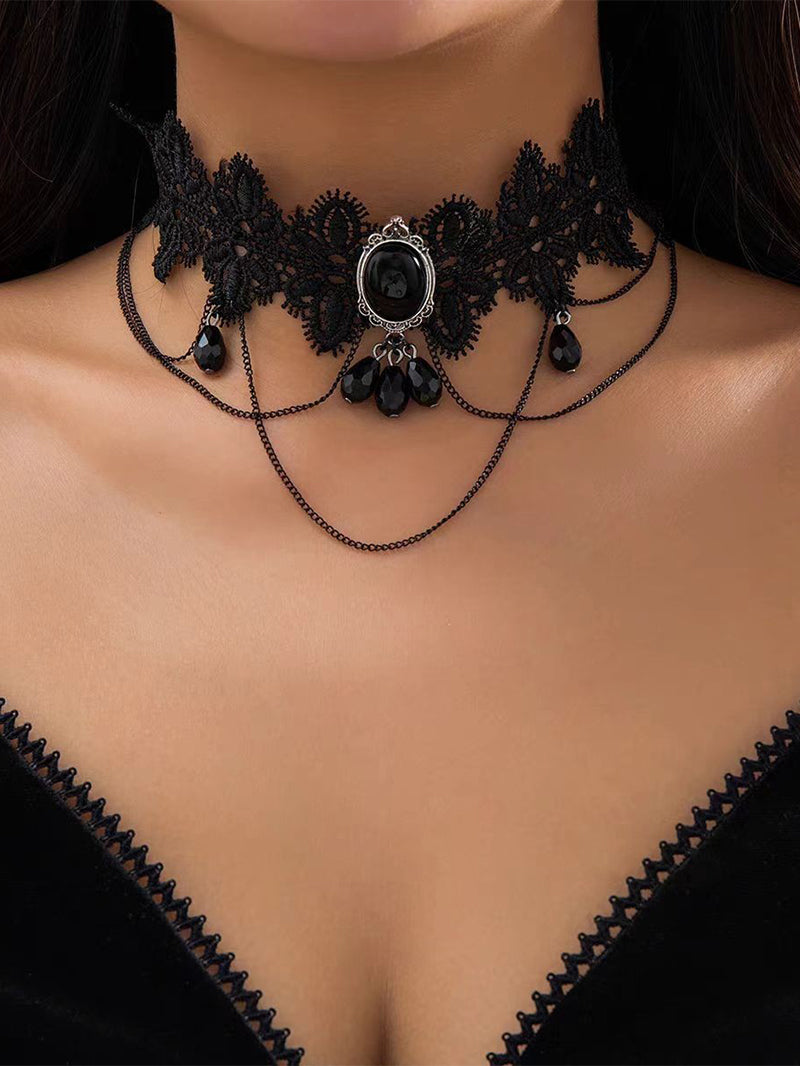 Gothic Lace Drop-Shaped Clavicle Chain Choker