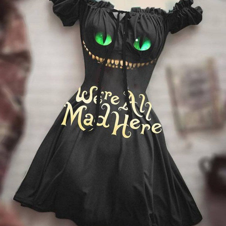 • Drawstring Bubble Sleeve High Waist Printed Dress