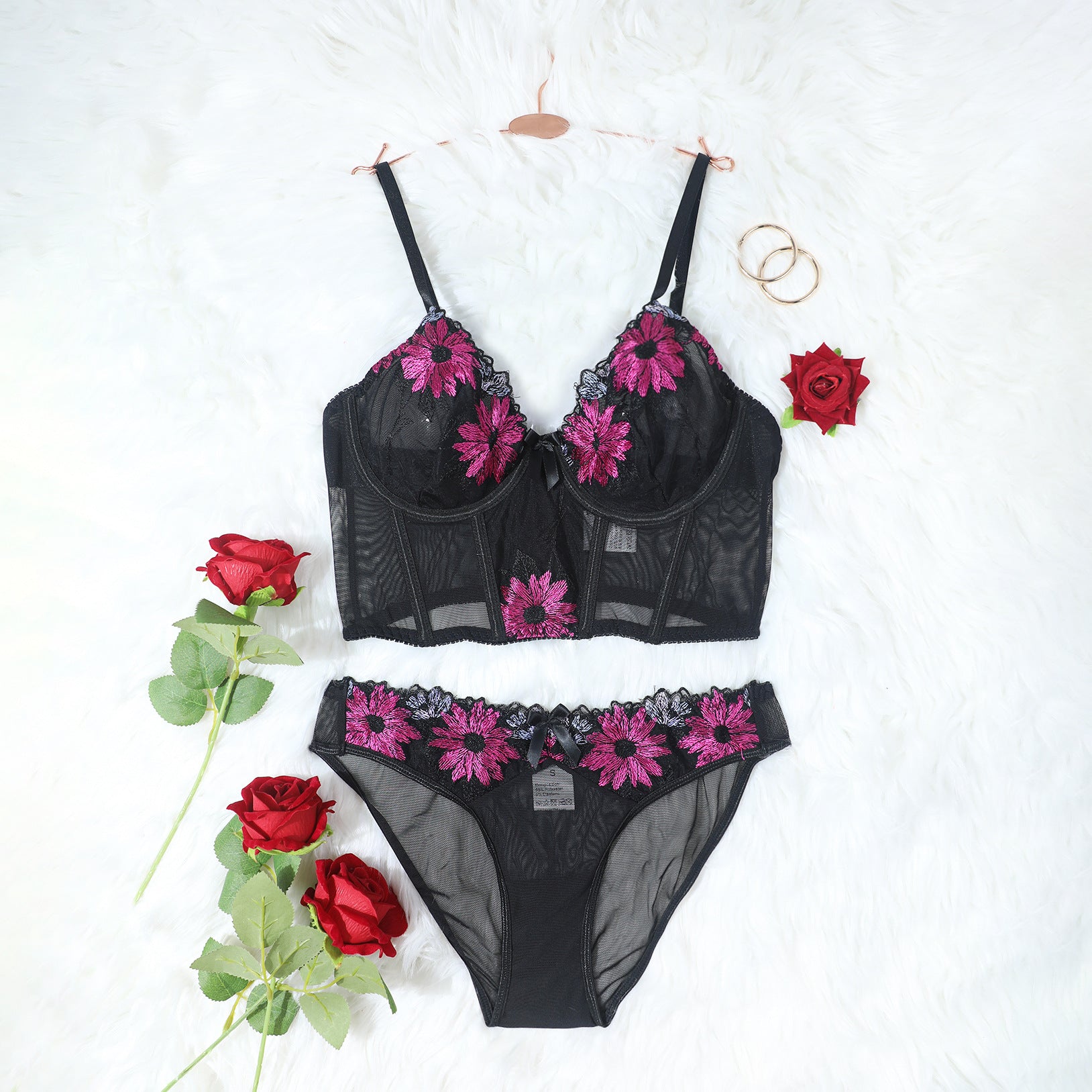 • Sexy Embroidered Lace Bra 2-Piece Set