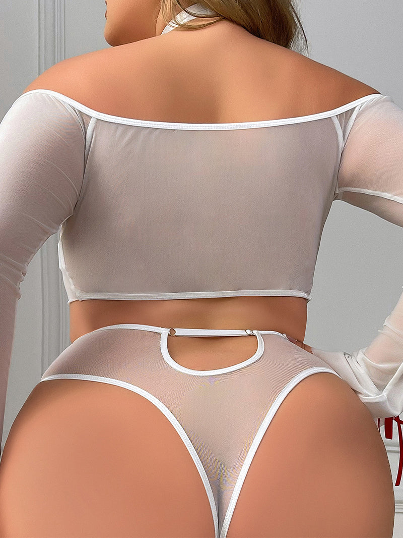 • Bow Ribbon Mesh Hollow Underwear Suit