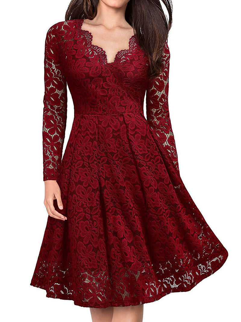 • Elegant Laced V-Neck Dress