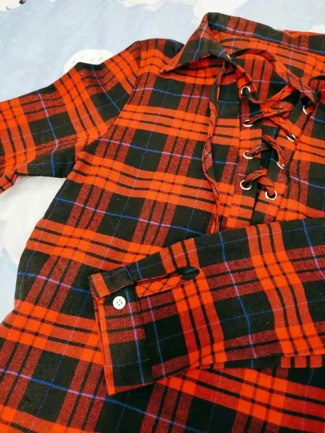 Plaid Lace-up Cut-out V-neck Side Split Dress