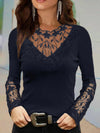 Sexy Deep V Lace Collar Lace Long Sleeve Top