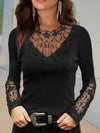 • Sexy Deep V Lace Collar Lace Long Sleeve Top