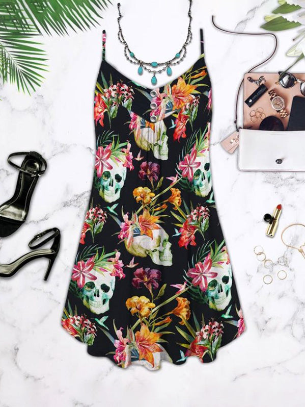 • Skull Flowers Love Summer Tropical Style
