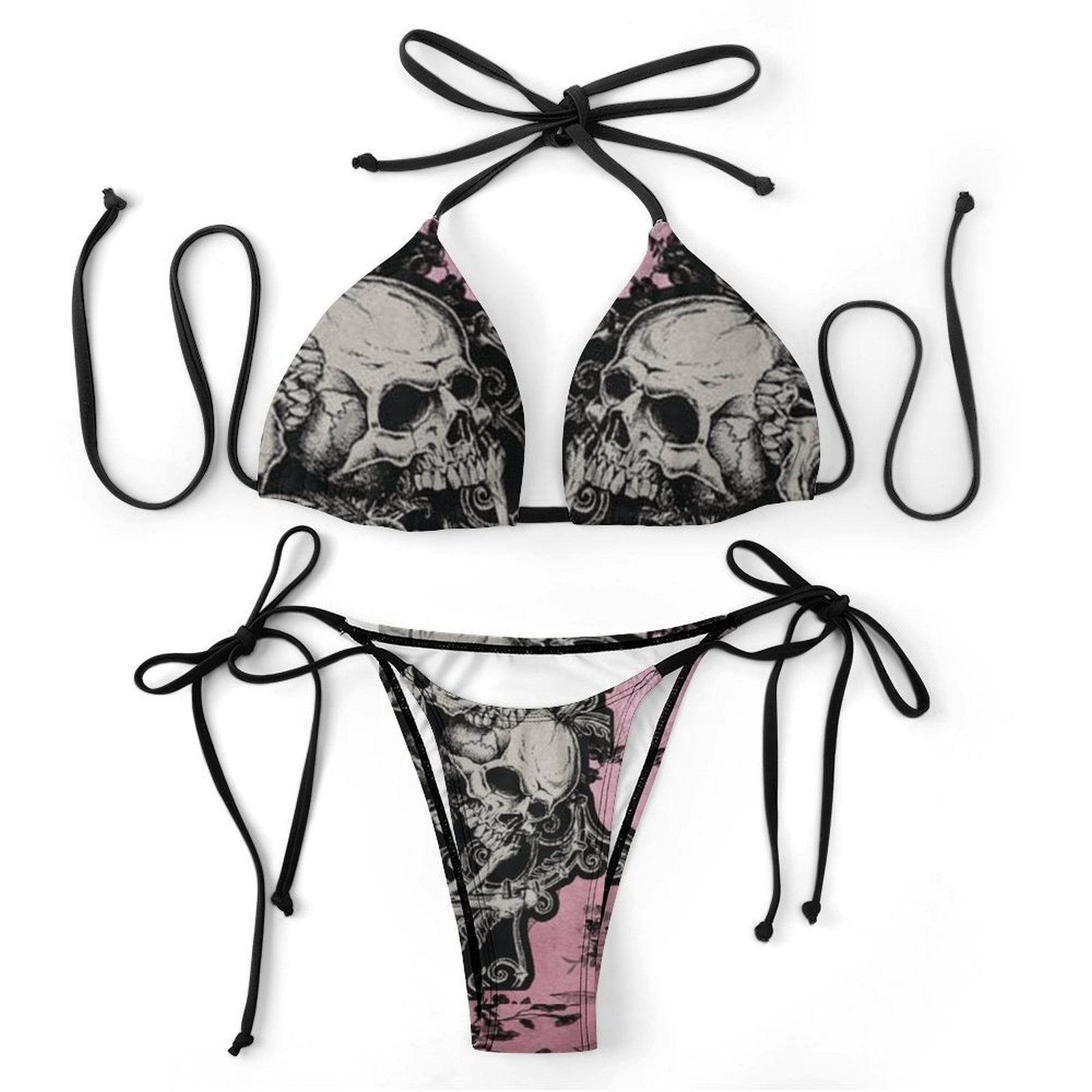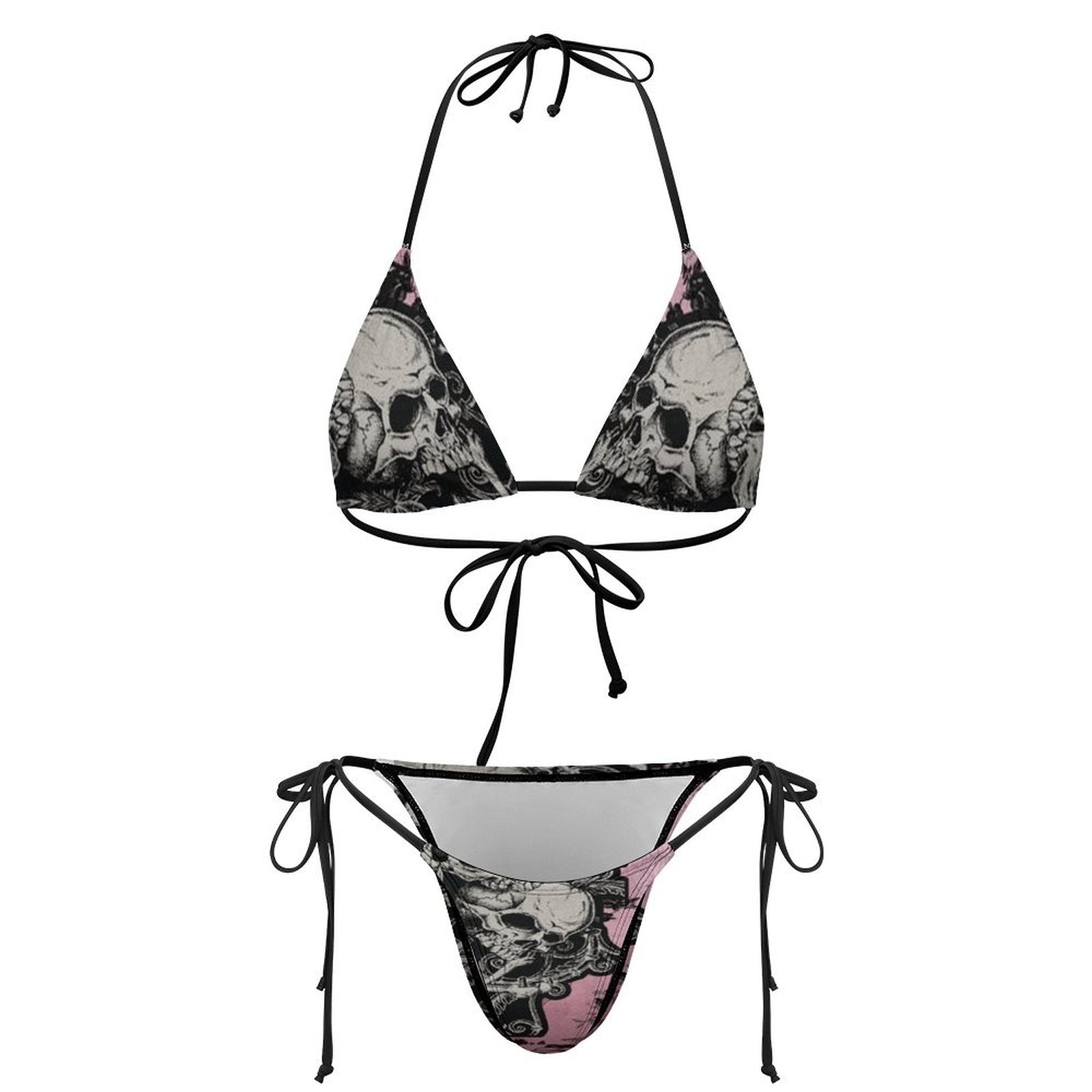 • Cartoon Skull Head Printed Lace-up Swimsuit